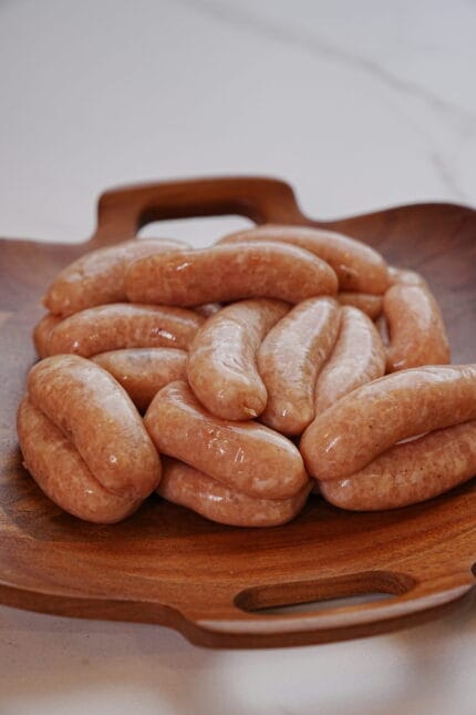 Préparée chaque jour dans nos ateliers, cette saucisse de poulet associe la légèreté de la viande blanche à la gourmandise