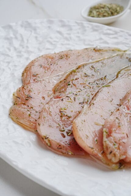 émincé de blanc poulet marinée